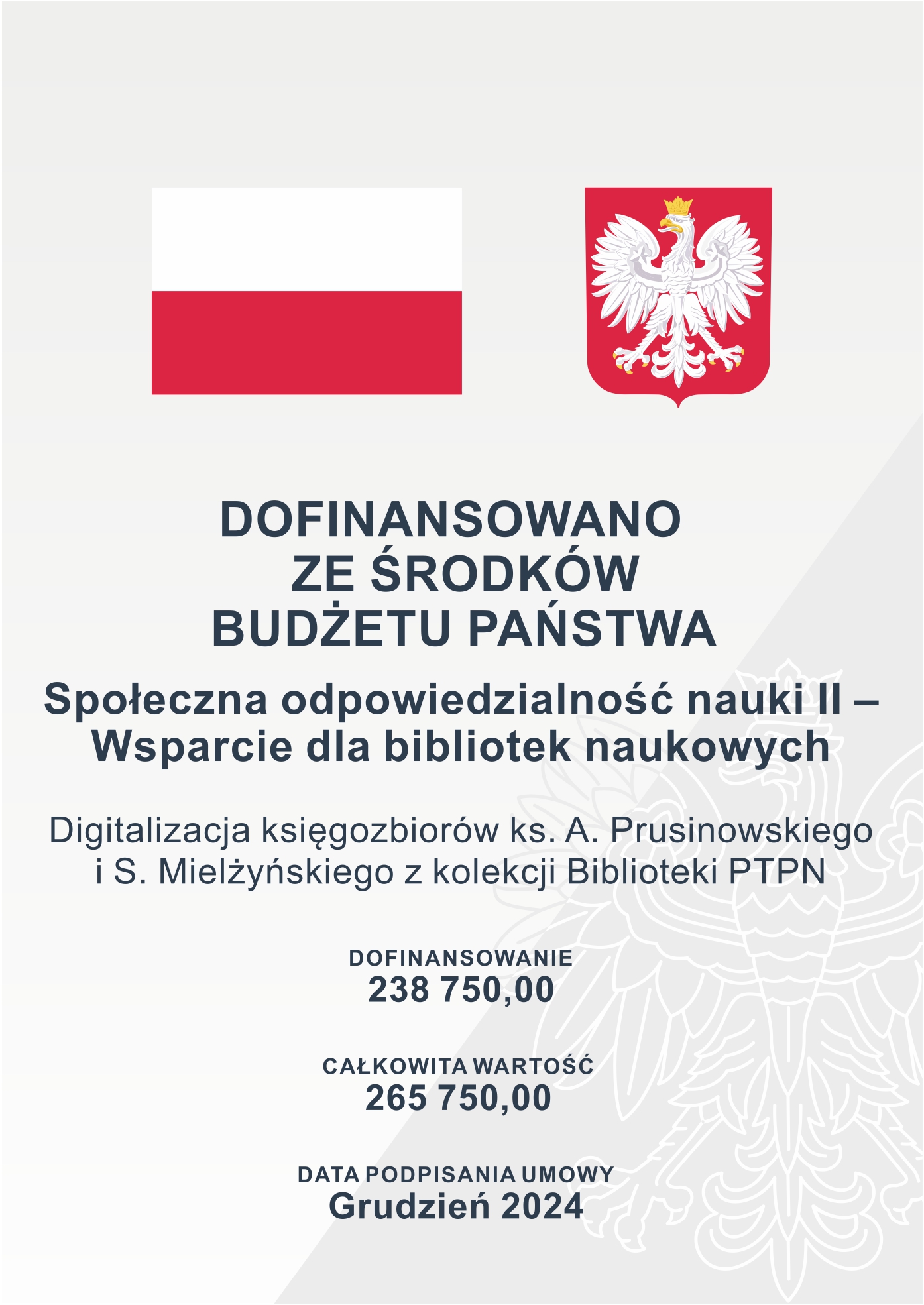 Digitalizacja księgozbiorów ks. A. Prusinowskiego i S. Mielżyńskiego z kolekcji Biblioteki PTPN, umowa nr BIBL/SN/0071/2024/02