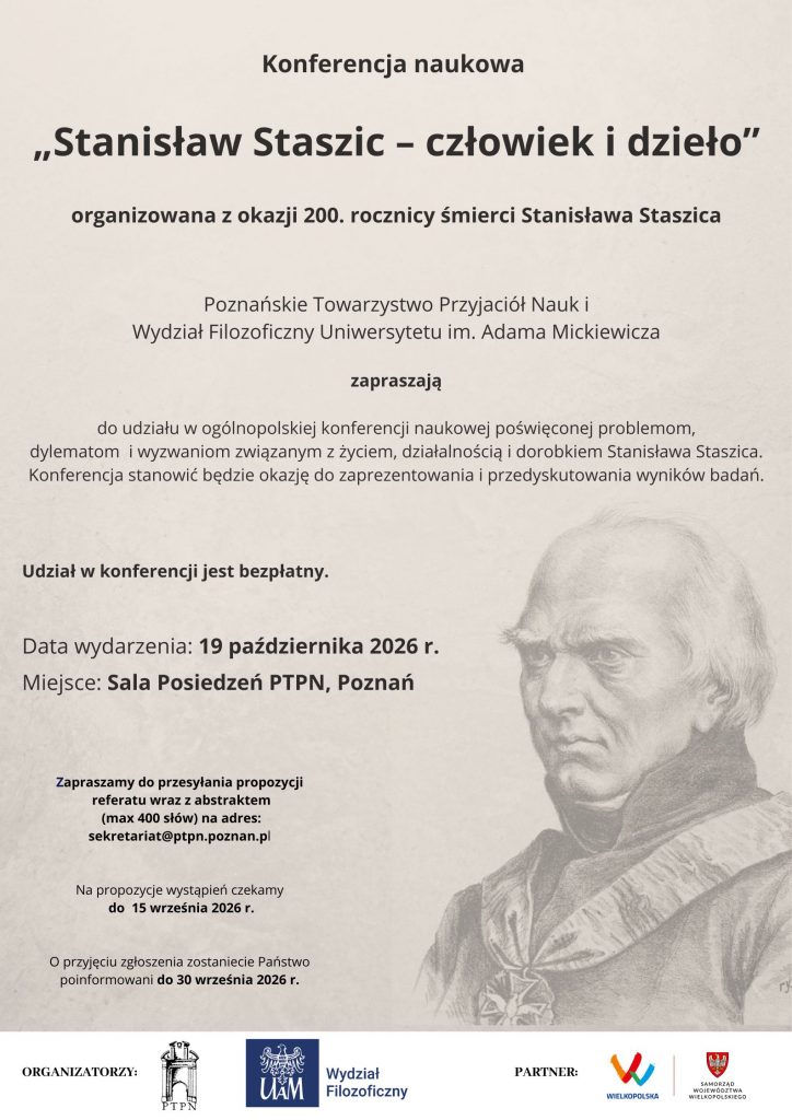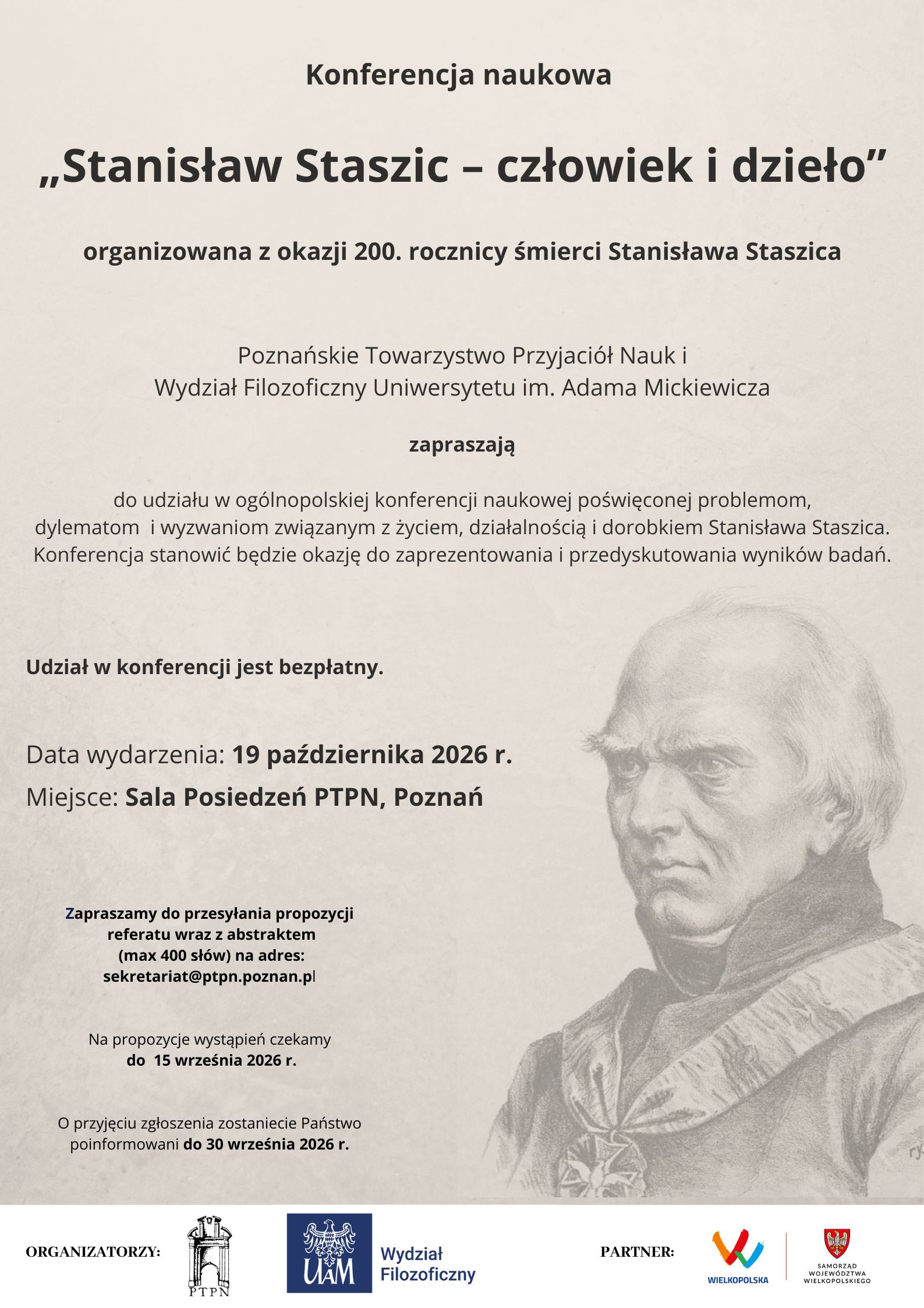 do udziału w ogólnopolskiej konferencji naukowej poświęconej problemom, dylematom i wyzwaniom związanym z życiem, działalnością i dorobkiem Stanisława Staszica. Konferencja stanowić będzie okazję do zaprezentowania i przedyskutowania wyników badań.