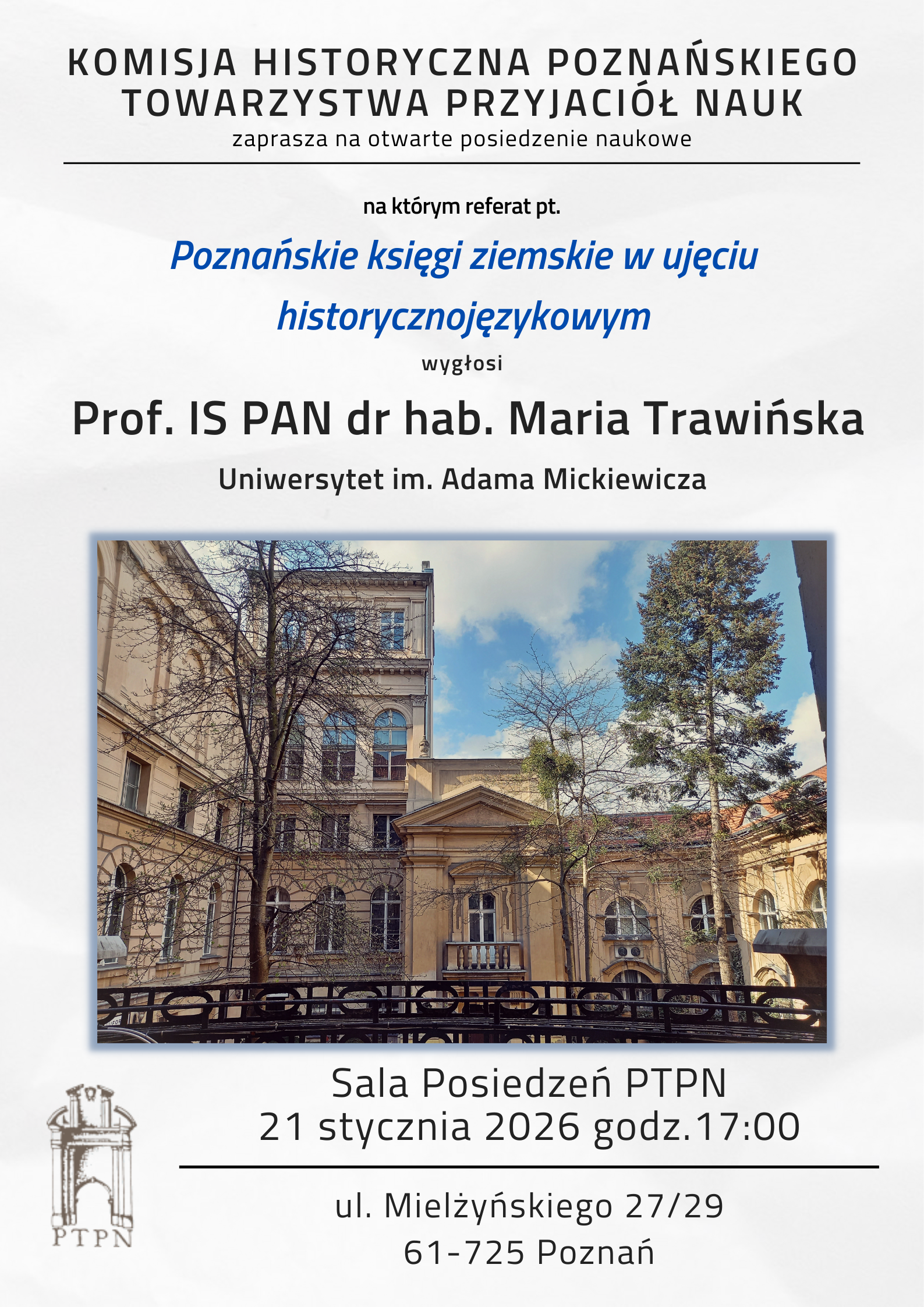 o godz. 17.00 w Sali Posiedzeń PTPN