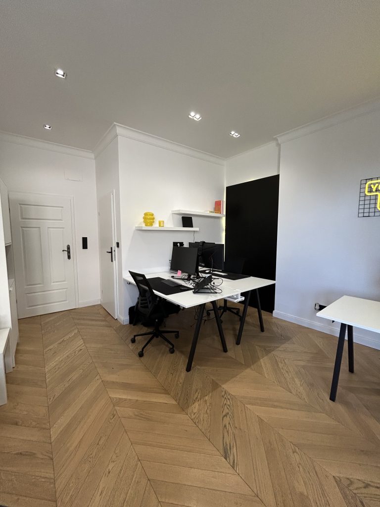 Na wynajem lokal na biuro o powierzchni 30,26, dwupokojowy (15,40 m2 oraz 12,40 m2) z aneksem kuchennym i własną toaletą (2,48 m2) w gmachu PTPN położony na IV piętrze od strony dziedzińca.